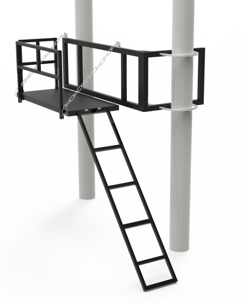 戶外柱上變壓器及電氣柜的安裝位置一般高于2.5米,需專門攜帶梯子進行檢修工作,在偏遠農(nóng)村地區(qū)以及泥濘路面梯子搬運不便,且大大影響檢修安全,影響正常工作的展開。針對以上突出問題,本公司研發(fā)出一種結(jié)構(gòu)簡單、方便操作,提高工作效率的固定式安全作業(yè)登高平臺,直接安裝于設(shè)備柱上,大大方便檢修人員的正常工作展開,降低安全隱患。